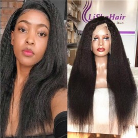 Kinky Straight 13x4 hd lace frontal wig 180% density natural black color