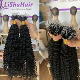 Indian Virgin Remy Human Hair Plastic Nano F Tip Hair Extensions Natural Color Kinky curly 100g/pack