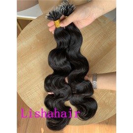 Plastic nano F tip human hair extensions indian virgin human hair natural color straight vs body wave