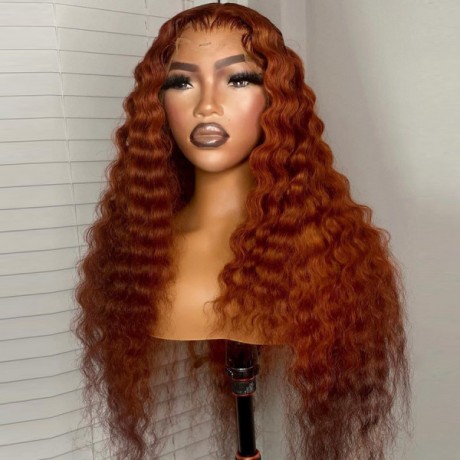 Ginger orange water wave virgin human hair lace front wig pre plucked 180% density